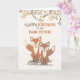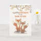 Ces deux renards bruns et blancs sont ceux dont vous avez besoin pour souhaiter à votre soeur jumelle un très joyeux anniversaire. Cette carte avec un arrière - plan plein de feuilles colorés et de branches sera une très belle surprise.