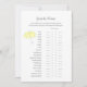 Voici une carte de jeu de baby shower Guess The Features. Parapluie jaune mignon sur un arrière - plan blanc à l'avant, arrière - plan jaune avec pois blancs à l'arrière.