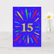 Une carte explosive à 15 ans ! Quelle merveilleuse façon d'envoyer des salutations d'anniversaire. Le numéro 15 en jaune vif avec une explosion de couleurs vives et d'étoiles.