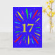 Une carte explosive à 17ème anniversaire ! Quelle merveilleuse façon d'envoyer des salutations d'anniversaire. Le numéro 17 en jaune vif avec une explosion de couleurs vives et d'étoiles.