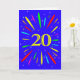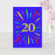 Une carte explosive à 20 ans ! Quelle merveilleuse façon d'envoyer des salutations d'anniversaire. Le chiffre 20 en jaune vif avec une explosion de couleurs vives et d'étoiles.