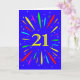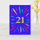 Une carte explosive de 21e anniversaire ! Quelle merveilleuse façon d'envoyer des salutations d'anniversaire. Le numéro 21 en jaune vif avec une explosion de couleurs vives et d'étoiles.