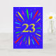 Une carte explosive de 23ème anniversaire ! Quelle merveilleuse façon d'envoyer des salutations d'anniversaire. Le numéro 23 en jaune vif avec une explosion de couleurs vives et d'étoiles.