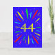 Une carte explosive de 44ème anniversaire ! Quelle merveilleuse façon d'envoyer des salutations d'anniversaire. Le numéro 44 en jaune vif avec une explosion de couleurs vives et d'étoiles.