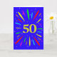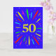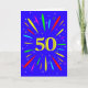 Une carte explosive à 50 ans ! Quelle merveilleuse façon d'envoyer des salutations d'anniversaire. Le chiffre 50 en jaune vif avec une explosion de couleurs vives et d'étoiles.