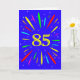 Une carte explosive de 85h anniversaire ! Quelle merveilleuse façon d'envoyer des salutations d'anniversaire. Le chiffre 85 en jaune vif avec une explosion de couleurs vives et d'étoiles.