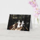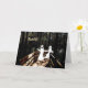 Deux petits fantômes courent dans la peur dans les bois tandis que les yeux dans les bois les suivent. Grande carte Halloween.