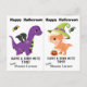 Cette jolie carte postale d'Halloween est conçue pour être découpée facilement en deux cartes. L'image est celle de deux adorables dinosaures "monstres". L'un porte un casquette sorcier et porte un panier à friandise de bonbons de bonbons de bonbons. Le violet a des ailes noires et porte quelques toiles d'araignée. Quelques chouettes chauves-souris volent autour. Le texte noir au-dessus de chaque image indique "Happy Halloween", et ci-dessous "Ayez un Dino-Mite Time !" avec votre signature. Parfait pour les élèves du primaire ou du préscolaire de donner à leurs amis à leur fête d'Halloween de l'école, et économique, aussi! Et les enseignants peuvent aussi la customiser pour donner aux élèves!