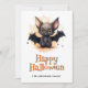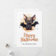 Bonne carte Halloween avec une jolie aquarelle illustrant une chauve-souris, des citrouilles et des fantômes. Personnalisez facilement cette carte d'Halloween pour les enfants avec votre nom de famille et texte.