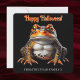 Parlez de l'esprit de la saison avec cette carte gothique de crapaud frappante. Doté d'un crapaud magnifique illustré de couleurs vives d'Halloween orange et noir, ce design est parfait pour ceux qui apprécient une esthétique unique et sorcière. Le recto comprend un texte facilement modifiable pour votre message personnel "Happy Halloween" et "From...". Le revers est sans texte, mettant en valeur l'étonnant art du crapaud contre un simple arrière - plan noir, créant une superbe impression de conservation qui pourra être encadrée et appréciée comme décor éffrayant pour les années à venir.