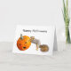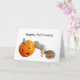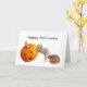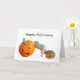 Un petit écureuil pousse un jack-o-lanterne sculpté sur cette drôle de carte d'Halloween, ajoutez vos propres mots pour customiser.