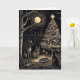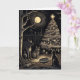 Une carte de Noël pleine de charme avec une scène cosy d'un chien gai et deux chats ludiques partageant un bol de nourriture festif. Dans un décor de lumières scintillantes et de neige douce, cette charmante illustration reflète l'esprit de convivialité et d'amour pendant la période des fêtes.
