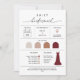 Cette carte d'information de fête de mariage est entièrement personnalisable. Éditer pour toute votre fête de mariage, y compris Maid of Honor, Flower girl, etc. Modifiez tout le texte et les couleurs pour qu'elles correspondent à votre mariage. Cliquez simplement sur le bouton bleu "PERSONNALISER" en haut à droite. Ensuite, faites défiler vers le bas et cliquez sur le bouton "Modifier à l'aide de l'outil de conception" pour customiser pleinement votre carte. Everleigh Collection - une collection étonnante et minimaliste qui dispose d'une police de calligraphie moderne qui est à la fois chic et élégant. Cette collection offre un design intemporel et élégant qui est parfait pour tous les événements, des mariages aux baby showers et tout entre les deux. Découvrez l'élégance et le raffinement de la collection Everleigh et faites de votre événement un souvenir inoubliable.