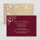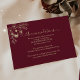 Elégant logement mariage bordeaux avec illustration florale vintage d'or et accents de style calligraphie. Partagez les informations sur les chambres d'hôtel, les numéros de contact et le site Web de votre mariage. Une combinaison parfaite pour les suites de mariage d'automne ou d'hiver. Besoin d'aide pour customiser ? Rejoignez le site bpkolman@gmail.com.