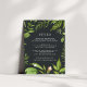 Conçue pour coordonner avec notre collection de mariage de Midnight Garden, cette carte d'information botanique verte fraîche comporte une bordure de verdure encerclant vos principaux détails mariages, comme les chambres d'hôtel, les informations de bienvenue de la réception, le site Web et plus, en blanc sur un élégant arrière - plan sombre. Ajoutez votre texte personnalisé à l'aide des champs fournis et utilisez la fonction Personnaliser pour ajuster les polices, les tailles et l'espacement.