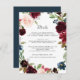 Conçue pour coordonner avec notre collection de mariages en fleurs radiantes, cette carte d'information fraîche botanique et florale présente une bordure de feuillage vert d'eucalyptus, des fleurs de marsala rose et bordeaux, des bourgeons bleu marine, de la verdure, encerclant vos principaux détails mariages, comme les chambres d'hôtel, les informations de bienvenue de la réception, le site Web et plus. Ajoutez votre texte personnalisé à l'aide des champs fournis et utilisez la fonction Personnaliser pour ajuster les polices, les tailles et l'espacement.