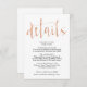 Dreamy rencontre rustique avec cette carte simple et élégante de détails de mariage en or rose. Ajoutez votre propre libellé dans le modèle situé sous la belle rubrique du script. Cette carte fait partie de notre gamme "Anne & Oliver" - consultez la gamme complète dans notre magasin!