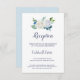 Cette carte classique d'encart de réception aux fleurs blanches est parfaite pour un mariage de printemps. L'élégant design floral présente des roses et des pivoines blanches et en ivoire doux, avec des touches de fleurs d'aquarelle bleu périvent et de feuillage vert. Personnalisez cette carte détaillée de boîtier avec vos informations de réception et incluez également votre adresse de site mariage !