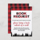 Demandez aux clients d'apporter des livres au lieu des cartes et de regarder votre bibliothèque de bébés grandir ! Cette carte d'encart imprimé avant et arrière est parfaite pour un baby shower et a une invitation correspondante. Comprend le motif et la silhouette du buffle rouge et noir. Idéal pour une fête à l'automne ou en hiver, une bûcheron, une aventure ou un thème extérieur ou un panier-repas.