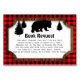 Demandez un livre pour votre Baby shower en insérant ces adorables ours de bois dans vos enveloppes d'invitation. Correspond parfaitement à notre Béary Excité Baby Shower Invitations et permet à tous vos invités de savoir ce que vous voulez pour votre fête. Doté d'une plaque de flanelle rouge et noire avec cadre de texture bois, accentué par de belles silhouettes d'ours bébé et de pins.
