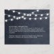 Chic moderne d'informations mariage d'été insérer carte design avec des lampes à cordes élégantes simples accrochées au sommet et un mélange classe de polices de script modernes et de calligraphie sur un arrière - plan imprimé de texture fausse aquarelle. Un design simple et élégant, parfait pour l'été ! Cliquez sur le bouton CUSTOMISER IT pour customiser les polices, déplacer du texte et créer votre propre conception unique d'invitation unique.