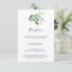 Cette carte d'encart de la réception est parfaite pour un mariage élégant en milieu d'été. Le design botanique présente un agencement luxuriant d'eucalyptus couleur aquarelle peint, de verdure et de feuilles verts avec de subtils ressorts de fleurs roses rousses. Personnalisez cette carte détaillée de boîtier avec vos informations de réception et incluez également votre adresse de site mariage !