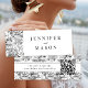 Élégant classique noir blanc chinoiserie porcelaine motif mariage de fleurs monogramme QR carte de registre cadeau.