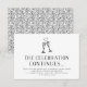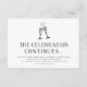 Continuez la fête ! Les inserts d'invitation à la soirée après mariage en noir et blanc chic présentent "la célébration continue" en typographie noire avec vos détails de fête en dessous, surmontés de deux flûtes à champagne illustrées unies par un cœur. La taille petite permet d'inclure les cartes avec vos invitations de mariage ou de les distribuer à la réception. Le verso des cartes présente un motif de vigne et de bourgeons botaniques dans les mêmes noir et blanc.