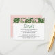 Carte d'insertion verte feuille rose mariage