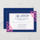 Une carte de réponse RSVP de mariage est offerte par un bleu marine moderne et rose. Customisez facilement avec vos détails !