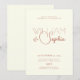 Cette invitation élégante présente un fond crème sophistiqué qui donne le ton parfait pour votre jour spécial. Le nom du marié est présenté en lettres majuscules grasses, dégageant force et clarté, tandis que le nom de la mariée est délicatement stylisé en cursive pour un soupçon d'élégance et de romance. Cette combinaison réfléchie de polices met en valeur à la fois l'individualité et l'unité, ce qui en fait une façon belle et mémorable d'inviter vos proches à célébrer votre voyage ensemble. C'est le mélange parfait de style moderne et de tradition intemporelle, conçu pour planter le décor d'une journée pleine d'amour et de joie.