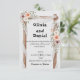 Définissez le ton de votre célébration romantique avec cette invitation de mariage magnifiquement conçue, représentant une arche en bois rustique drapée de tissu blanc doux et ornée de fleurs aquarelles rose pâle et mauve. Ce design élégant inspiré du style bohème est parfait pour les mariages sur le thème de la nature, du jardin ou rustiques.