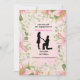 Belle carte d'invitation fiançailles avec un arrière - plan rose doux, décorée de délicates fleurs roses. Il présente une photo sincère d'un homme qui se propose à une femme, capturant la joie du moment spécial. Parfait pour annoncer votre fiançailles de manière romantique et élégante.