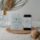 Ce design adorable présente un petit éléphant sucré assis sur un bouquet de fleurs bleues et blanches à la verdure douce. L'arrière - plan comprend une texture d'aquarelle bleue peinte à la main. Ce design présente également des polices élégantes dans une palette de couleurs gris doux. Voir toute la collection pour plus d'articles correspondants!