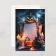 La carte d'invitation d'Halloween dégage un charme festif et éffrayant, parfait pour donner le ton d'une fête d'Halloween. L'espace vierge central attend vos détails personnalisés de l'événement, flanqué de citrouilles sculptés brillants, d'une lumière chaude aux chandelles et de feuilles d'automne éparpillées. Au-dessus, une série de lumières scintillantes et de chauves-souris clignotantes ajoutent à l'atmosphère étrange mais accueillante. L'arrière - plan de nuit noire complète le thème d'Halloween, faisant de cette carte un choix idéal pour inviter les invités à une fête d'Halloween mémorable.