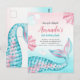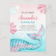 Carte d'invitation d'anniversaire pour fille avec un thème "Sirène sous la mer" avec une sirène, des coraux peints à l'aquarelle, des algues et des écailles de sirène en rose, violet et turquoise. Cette invitation d'anniversaire pour enfants est parfaite pour une célébration estivale.