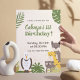 Carte d'invitation d'anniversaire avec illustration de la forêt verte" de Zazele, un mélange captivant de tons marrons, beige et de verts intenses qui vous transporte dans une jungle forestière colorée. Cette carte d'invitation est le moyen idéal pour célébrer un joyeux anniversaire, une invitation à une fête que vous ne voudrez pas manquer. Avec son illustration époustouflante, ce n'est pas juste une carte ; c'est une œuvre d'art, une célébration en soi.