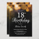 Carte d'invitation d'anniversaire de parties scintillantes d'or 18ème. Anniversaire adulte. Arrière - plan de Bokeh de parties scintillantes d'or. 16ème 18ème 21ème 30ème quarantième cinquantième soixantième soixante-dixième quatre-vingtième quatre-vingt-dixième 100th. Tout âge. Pour davantage de personnalisation, cliquez sur svp la "personnaliser il" bouton et utilisez notre outil de conception pour modifier ce modèle.