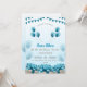 Votre invitation d'anniversaire moderne bleue présente des ballons de fête, des drapeaux à guirlandes, des boîtes de cadeaux avec des rubans et des lignes épurées sur un fond bleu clair—idéal pour une ambiance de fête contemporaine.