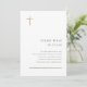 Carte d'invitation de baptême croix dorée minimaliste moderne avec une typographie simple. Cliquez sur le bouton d'édition pour personnaliser ce design avec vos informations.