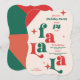 Préparez-vous à décorer les salles et à faire la fête avec cette invitation de fête de fin d'année moderne et rétro amusante. Grande typographie Fa La la en rouge et vert. Personnalisez tout le petit texte sur cette carte pour votre fête de fin d'année. Parfait pour une fête de Noël, une fête d'échange de cadeaux de fin d'année ou une invitation de fête de fin d'année d'entreprise.