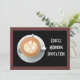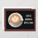 Es-tu dans un cercle matinal de café qui se rencontre si souvent ? Ou une partie d'un comité local qui a quelque chose à se défouler ? Peut-être y a-t-il un problème local que vous voulez mettre en lumière et discuter avec les gens du quartier. Vous pourriez utiliser ces cartes d'invitation pour faire passer le message sur la réunion, ou à invitation de nouveaux voisins à votre cercle de café. Le design de la carte d'invitation comporte une photo d'une tasse de latte de caffe invitant avec un magnifique motif de coeur tourbillonnant sur la surface mousseuse du café. Vous pouvez personnaliser le texte en fonction de la date, de l'heure, du lieu et du sujet de la réunion, et changer la couleur du arrière - plan pour l'adapter. Nous avons utilisé un riche arrière - plan de couleur café sur le devant de la carte, mais vous pouvez changer cela pour convenir. La carte serait également appropriée pour des événements d'affaires et des invitations.
