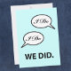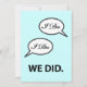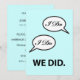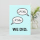 Carte d'invitation pour réception après mariage, annonce de mariage secret ou fête avec un design humoristique 'I Do I Do We Did' et votre texte personnalisé au verso. Si vous êtes déjà mariés, avez fait une fugue ou avez eu un mariage à l'étranger ou une cérémonie à la mairie et que vous organisez une fête de célébration de mariage plus tard, personnalisez cette invitation simple - avec une touche d'humour - pour votre événement.