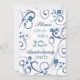 Carte d'invitation pour une fête d'anniversaire de mariage de 20 ans avec un motif floral élégant blanc et bleu, délicat et stylé avec des volutes ludiques. Personnalisable avec les détails de votre fête.