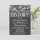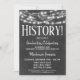 Une carte d'invitation amusante pour une fête de remise des diplômes en histoire sur tableau noir en noir et blanc avec des lumières scintillantes en haut.
