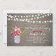 Célébrez votre jour spécial avec cette élégante carte d'invitation pour l'anniversaire de mariage. Ce design présente un magnifique bouquet de fleurs rouges avec un pot Mason et des guirlandes lumineuses sur un fond en bois rustique.