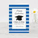 Il s'agit d'une carte bleue rayée pour lui ou elle, qui peut être personnalisée sur le front avec l'année de remise des diplômes, le nom de l'école et le nom du diplômé. Il dispose d'un grand casquette et d'un design rayé dans l'arrière - plan. L'intérieur de cette carte d'obtention de diplômes vous offre des félicitations sincères, que vous pouvez facilement personnaliser si vous le souhaitez. L'arrière est décoré de rayures avec un endroit pour vous personnaliser avec l'année de graduation. Cela ferait un grand gardien de diplômes.