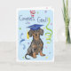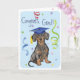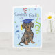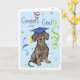 Félicitez votre diplômé favori avec un cadeau avec un mignon et heureux diplômé de Dachshund portant un mortier au milieu d'une flûte de confettis.