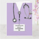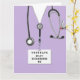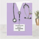 Cartes de fin d'études uniques de l'école de soins infirmiers, avec gommage à la lavande, stéthoscope et illustration amusante du couteau suisse. Modifier le texte pour ajouter le nom de l'infirmière.