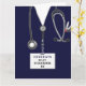 Carte de remise des diplômes de l’école de soins infirmiers comportant des gommes d’hôpital bleu marine, du stéthoscope et un couteau de l’armée suisse. Modifier le texte pour ajouter le nom de l'infirmière.